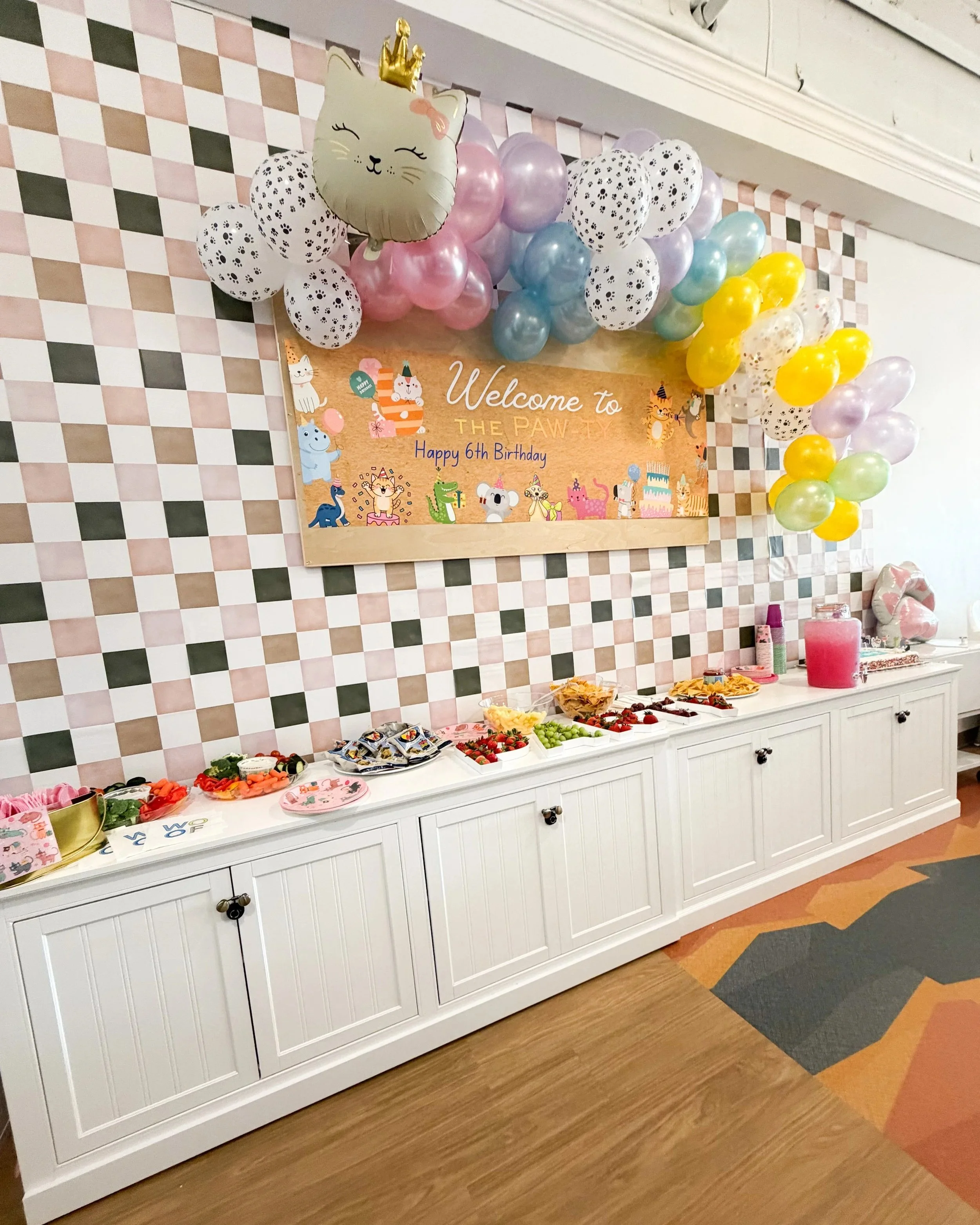 Balloon arch and banner matching theme